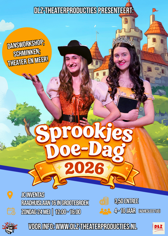 Lieve prinsen en prinsessen – hier volgt een belangrijke mededeling! πΊ Op zondag 24 mei openen de poorten van het kasteel van JC Inventas in Grootebroek. Van 12:00 tot 16:00 kun je springen; dansen; cakejes versieren; geschminkt worden en nog véél meer! Alle bekende karakters uit de DLZ-Sprookjes zijn die dag aanwezig om er – samen met jullie – een sprookjesachtige middag van te maken.π